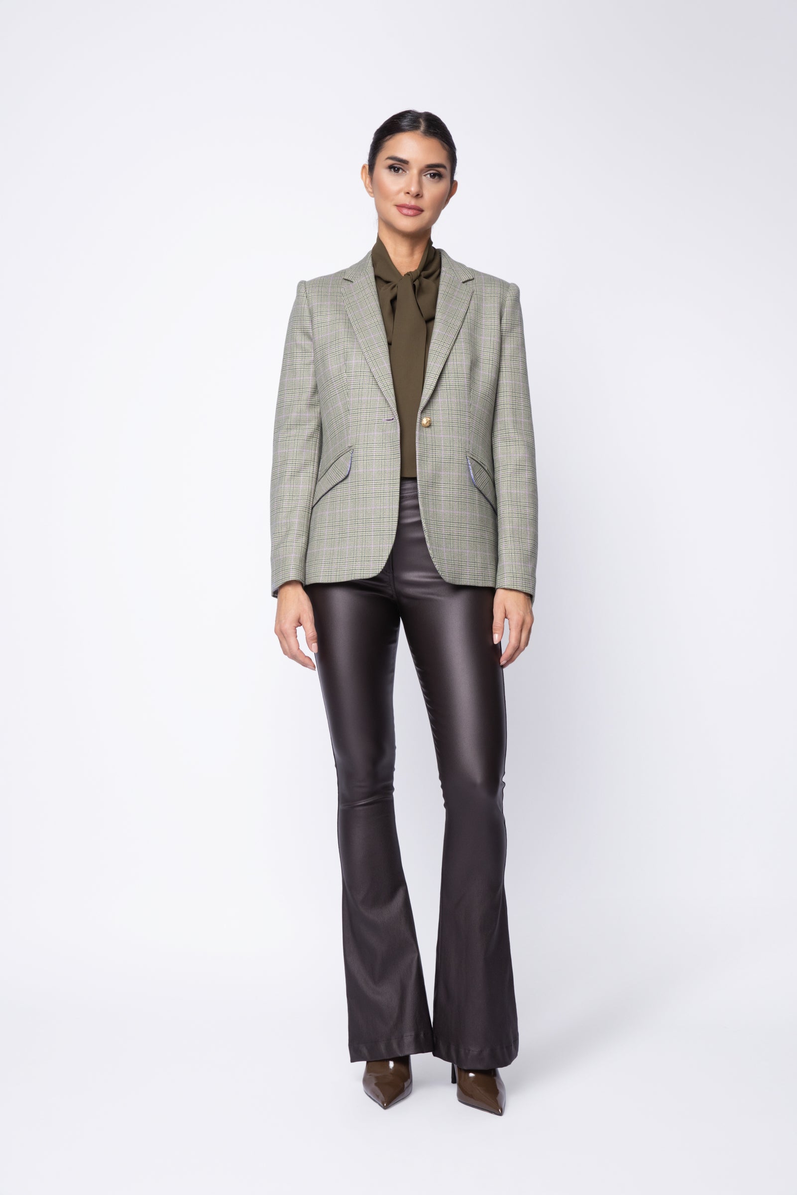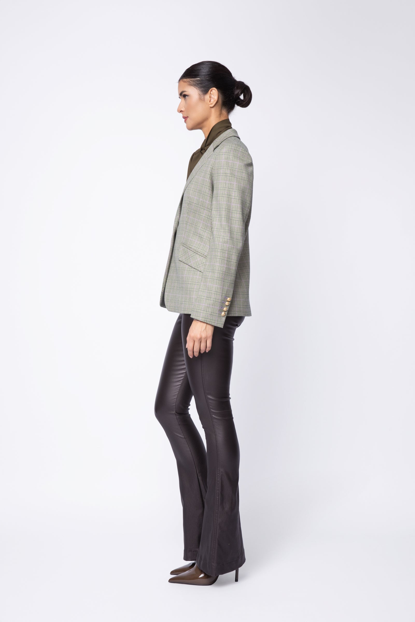 In collaboration with Spanish brand, Bariloche, this classic plaid blazer features gold-tone buttons and flap pockets along with the expert craftsmanship in quality fabrication and design for which Bariloche is renowned.