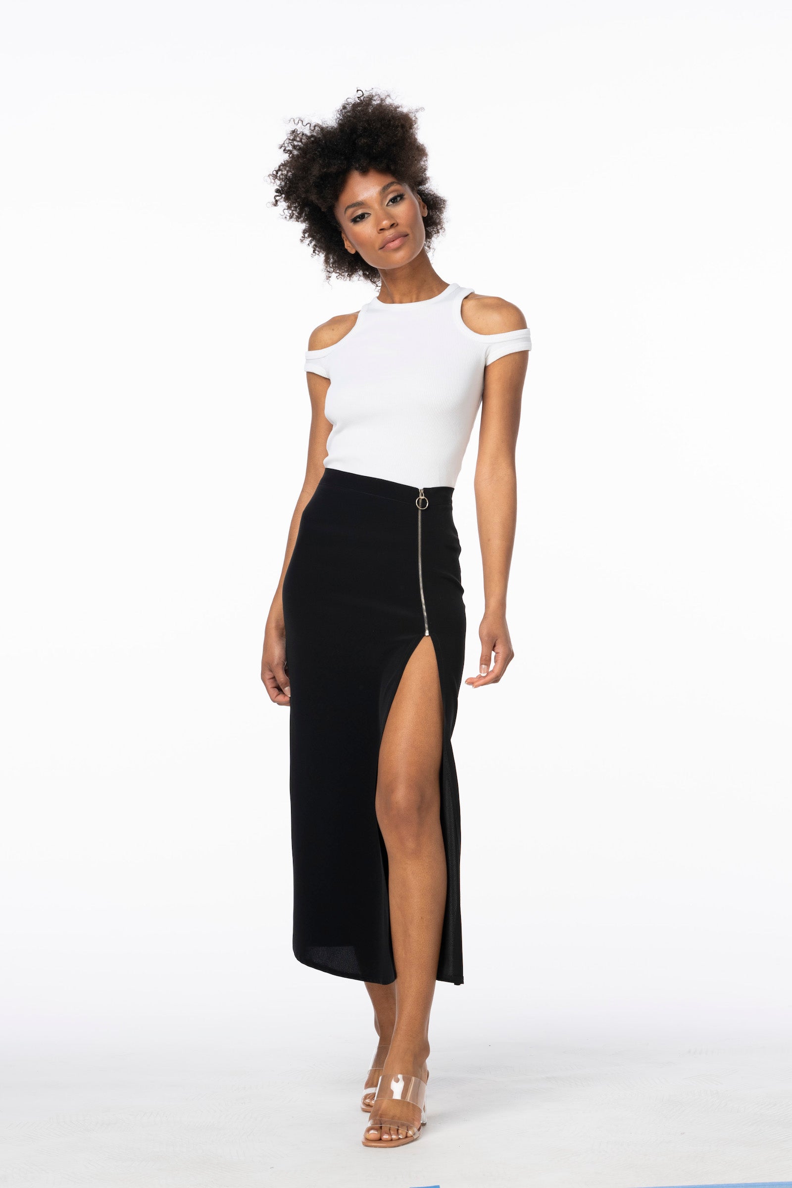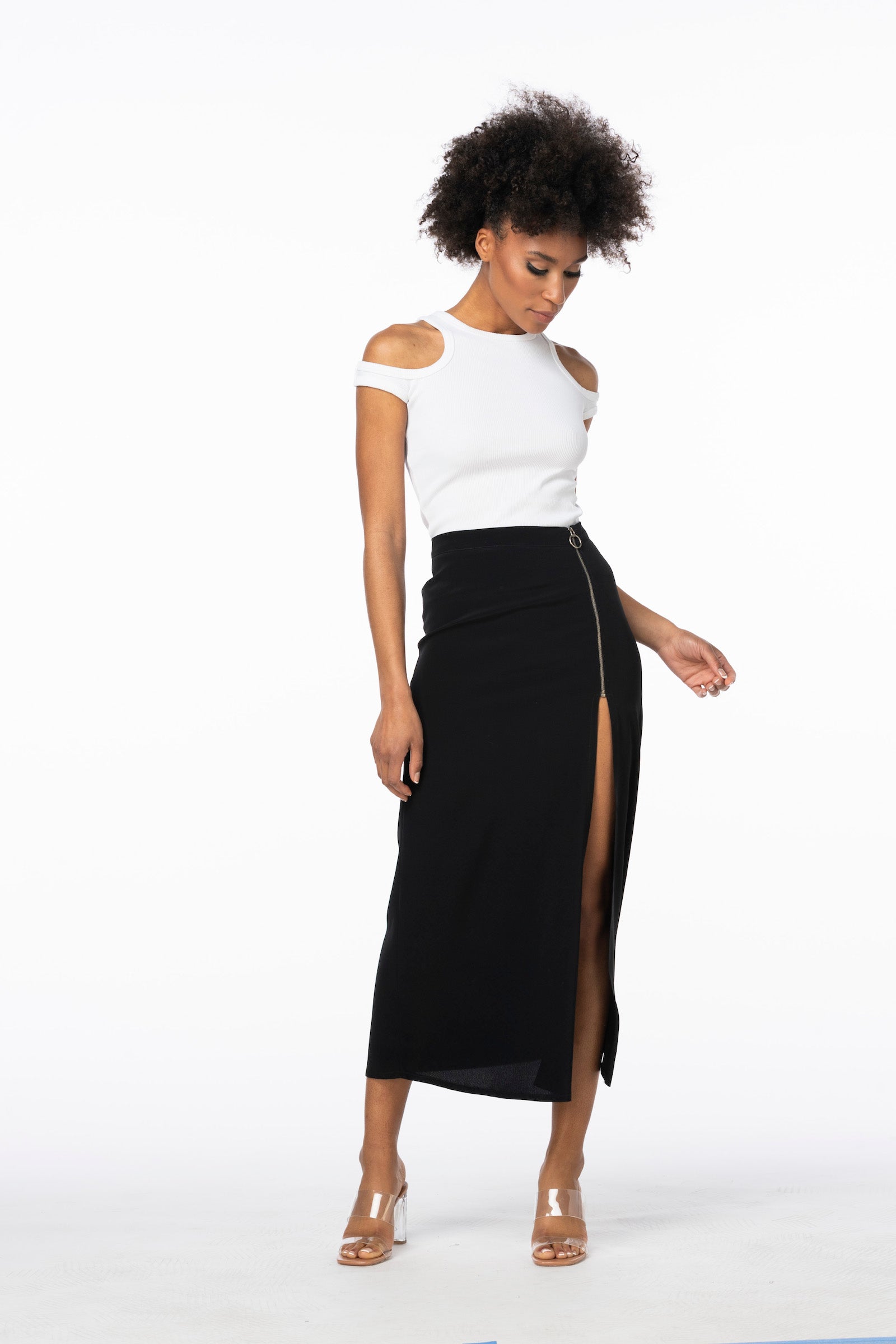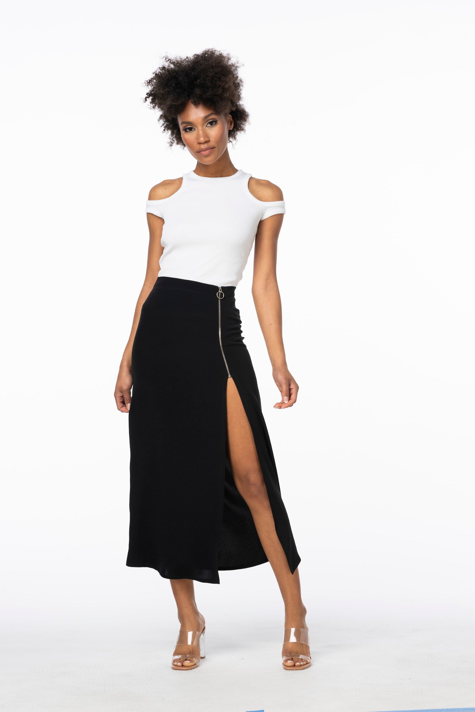 Made of 100% Crepe with Italian exposed zipper opening at front