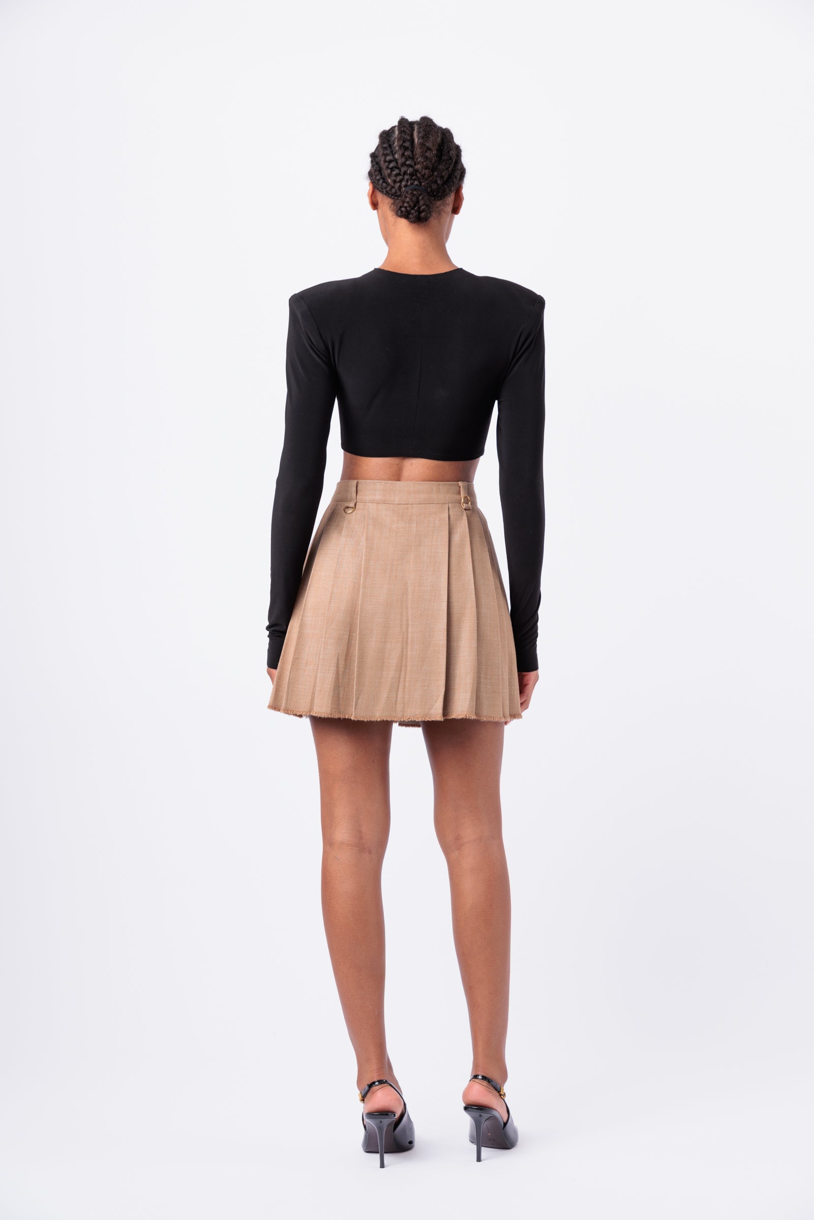 Pleated Denim Mini Skirt