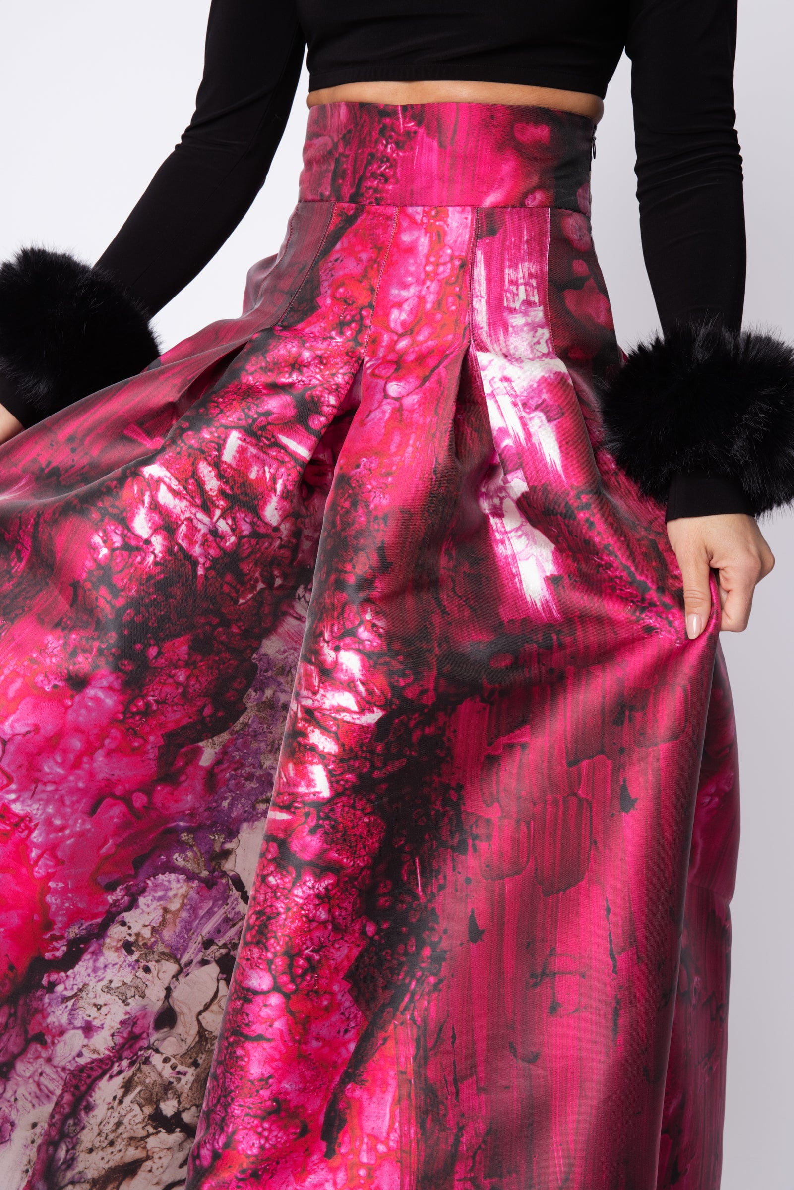 Elevate your style with our Statement pant. Crafted from luxurious imported silk faille, this pant boasts a striking silhouette accentuated by a high-waisted wide waistband and exaggerated extra wide legs. Tucked pleating through the hips and an invisible side-seam zipper and hook-and-bar closures provide a flattering and polished look while hidden side pockets add a bonus convenience to this sophisticated pant that’s sure to make a statement at any special occasion.