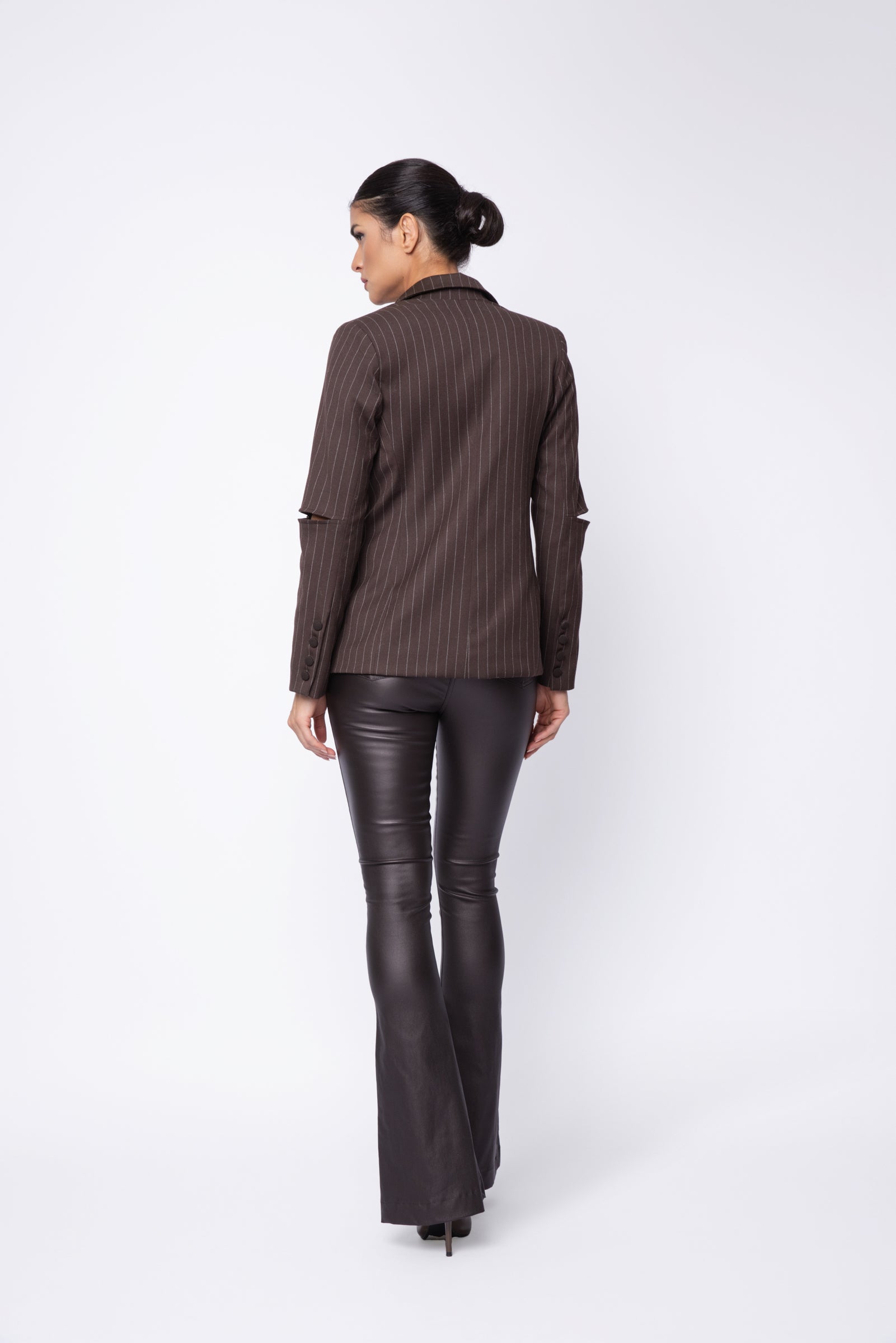 Our all-time favorite Rocker Zip Jacket is now offered in a smart pinstripe suiting variation. Designed with signature elbow zippers, enabling the creation of slash-cut sleeves for a more statement effect, the jacket provides the same slim tailored silhouette and modern menswear-inspired look.